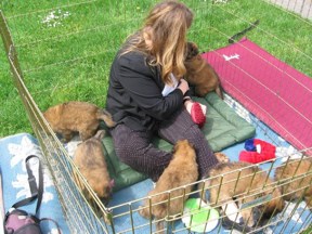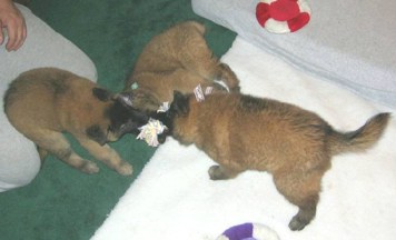 Time just flies by....the puppies are growing up all too fast & we're having far too much fun just being with them to take photos that co-breeder Carole thinks are 'web-worthy' The weather in Seattle has been far from co-operative too, Greg even built the puppies their own 'pup tent'!!